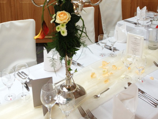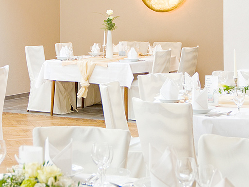 Ob Hochzeit oder runder Geburtstag, wer bei uns feiert, feiert richtig. Das beginnt schon bei der Planung, denn wir setzen alles daran, Ihnen eine individuell auf Ihre Wünsche ausgerichtete Festivität zu ermöglichen. Unterschiedliche Räumlichkeiten bieten Platz für große und kleine Gesellschaften. Von der Dekoration bis hin zur Menüzusammenstellung stehen wir Ihnen mit Rat und Tat zur Seite. Unser motiviertes Serviceteam sorgt dafür, dass es Ihren Gästen an nichts mangelt und Ihre Feier zu einem rundum gelungenen Ereignis wird. |